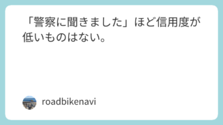運転レベル向上委員会の人は「18条3項の違反かどうか?のみ」に固執して「事故防止」という観点はないようですが、パトカーが自転車の後ろに追従していることを「間違い」だと語っている。そして「追い越しするなとも追い抜きするなとも書いてない」と力説...