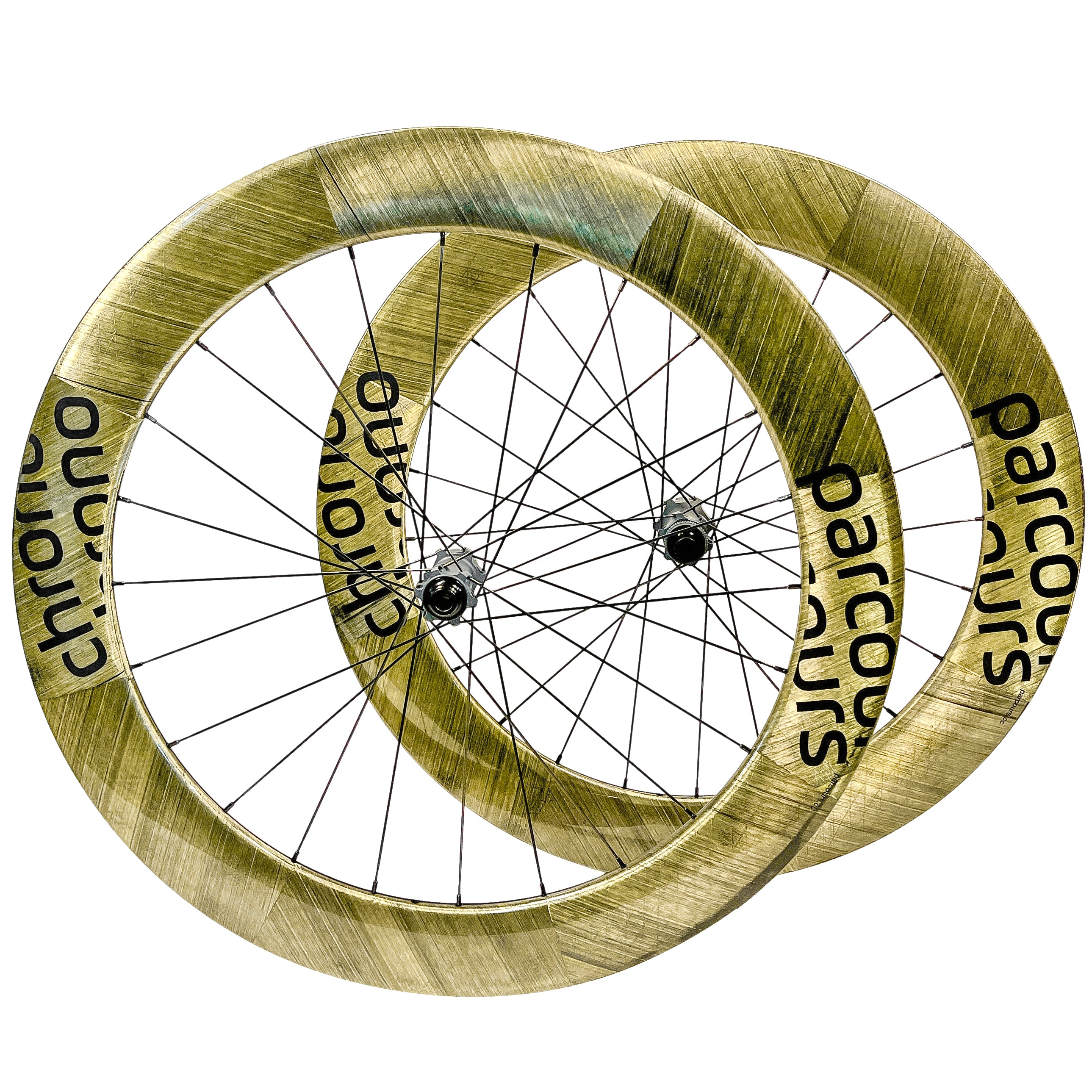 Hypetexという炭素繊維への着色技術を使い、塗装ではないゴールドリムのホイールを作ったとか。