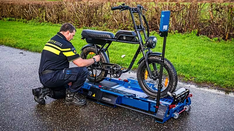 このローラー台がオランダ国内に計247台配置され、違法電動自転車の摘発に活用されるらしい。