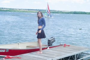 トライアスロンの大会では、たまに、水着のトップス(といっても、ガチスイム用なのか、露出は少なめ)の方もたまにいらっしゃいます。これもヘソ出しですが、大会中なので、気になりません。