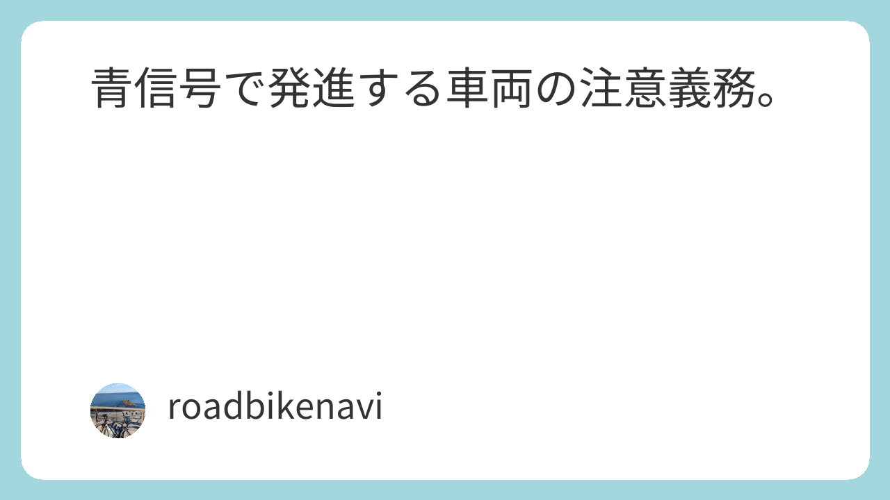 ここから導かれる帰結は、「青信号に切り替わり発進する際には横断歩道全体を見渡して安全確認してから横断歩道を越える」になる。