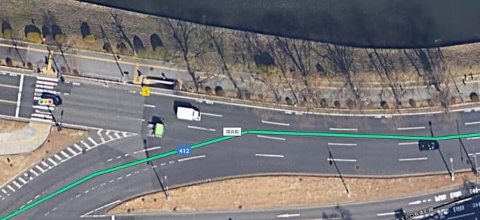 こういう構造(Googleマップより)。画像左側で3車線道路同士が合流して4車線になってる。左下から合流したら道路の左端に到達するまでに右側の車線を走らざるを得ない。画像左端にある横断歩道を渡ろうにも左折したら逆走になる。知ってれば一旦降りて横断歩道という選択もあろうが初見では無理でしょ。 https://t.co/CAd9JTwczX pic.twitter.com/0AvDWiVkUK