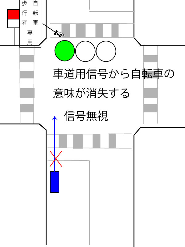 自転車ルールがややこしいのは「信号無視」というパワーワードがこういうトラップで起きてしまう点。