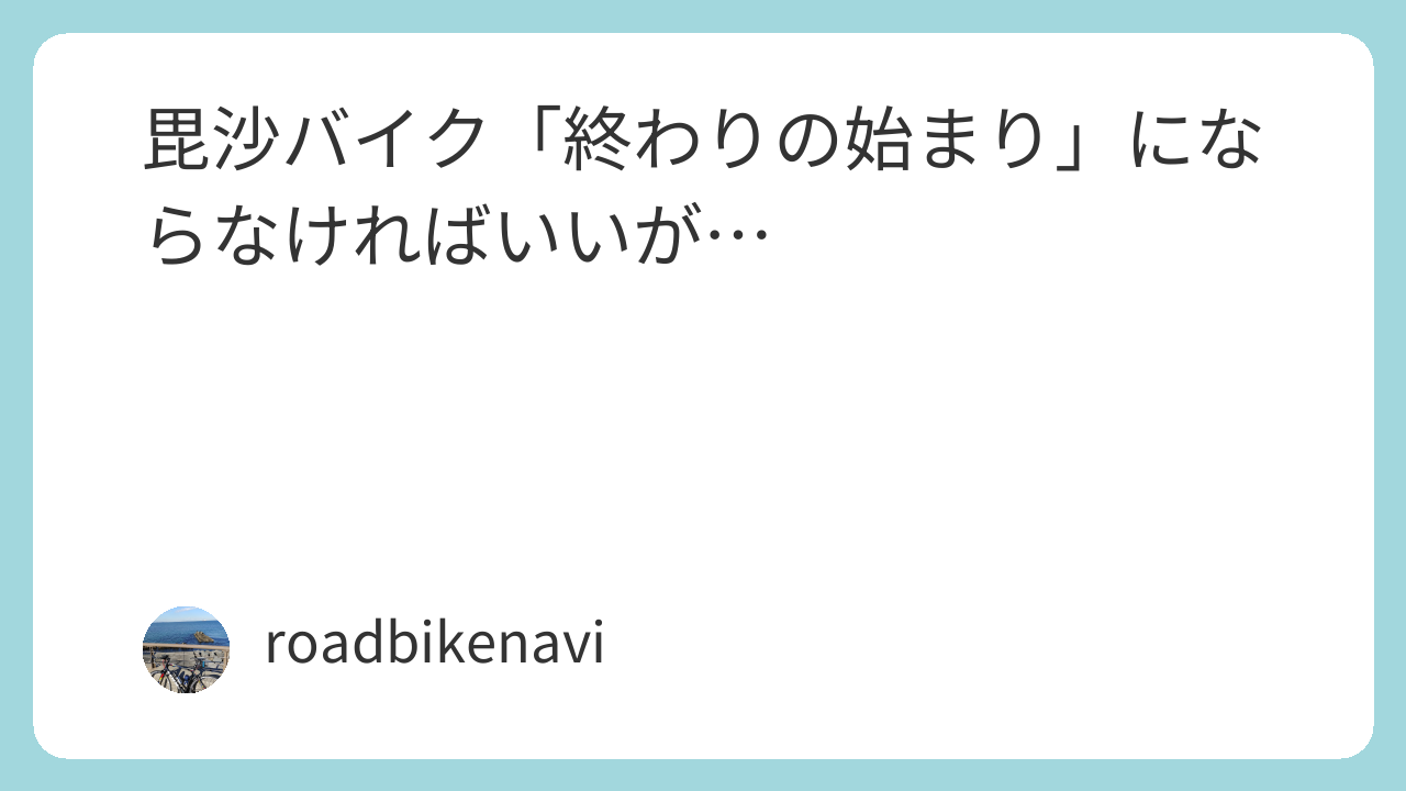 毘沙バイクの「終わりの始まり」にならなければいいが…