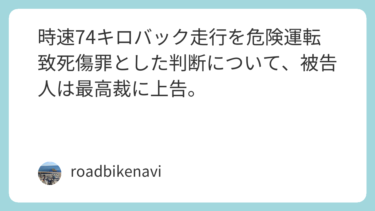 時速74キロバック走行を危険運転致死傷罪とした判断について、被告人は最高裁に上告。