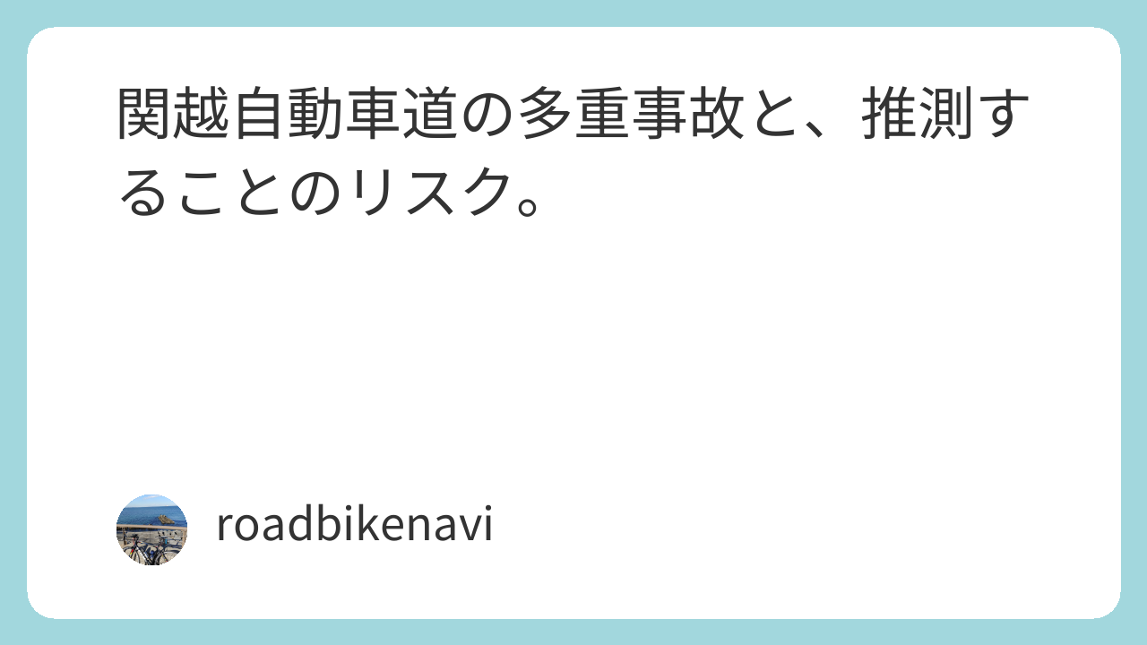 関越自動車道の多重事故報道が少しずつ明らかになってきてますが、