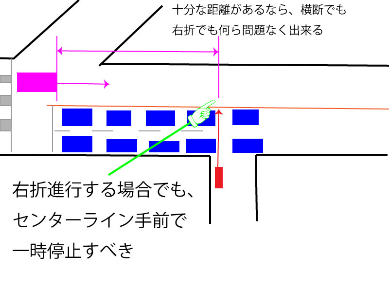 基本過失割合を適用する事例なのかについても、クルマからみて被害自転車が視認可能になった地点での距離感次第になると思いますが、