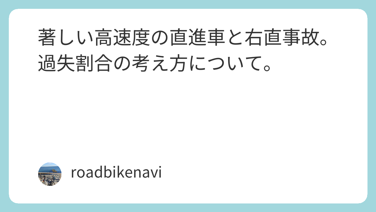 現にこの事故について、当初被告人側の保険会社は「右折車80%程度」という見通しを伝えてきたあとに、直進車の著しい高速度が判明し「算定不能」と言ってきたそうな。