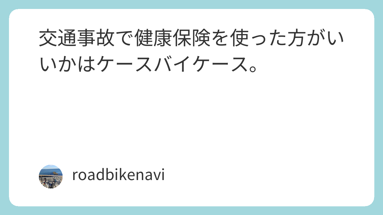 しかし、現実にはケガの程度、治療期間、相手の保険加入状況など様々な要素でどちらを選ぶべきかは変わるのだから、どっちがいいかを一般化しようとすれば必ず誤解を生む。