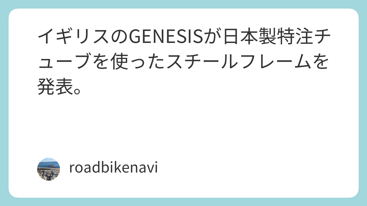 イギリスのスチールフレームブランド「GENESIS」が、日本製の特注スチールチューブを使ったグラベルロードのプロトタイプを発表したそうな。