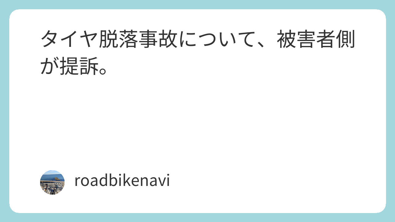 札幌で起きたタイヤ脱落事故について、被害者側はクルマの所有者、クルマの運転者、運転者の元妻(事故当時は婚姻感激)が契約していた保険会社を相手に訴訟提起するそうな。