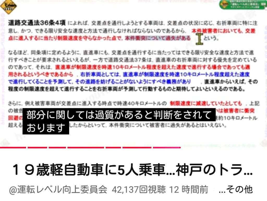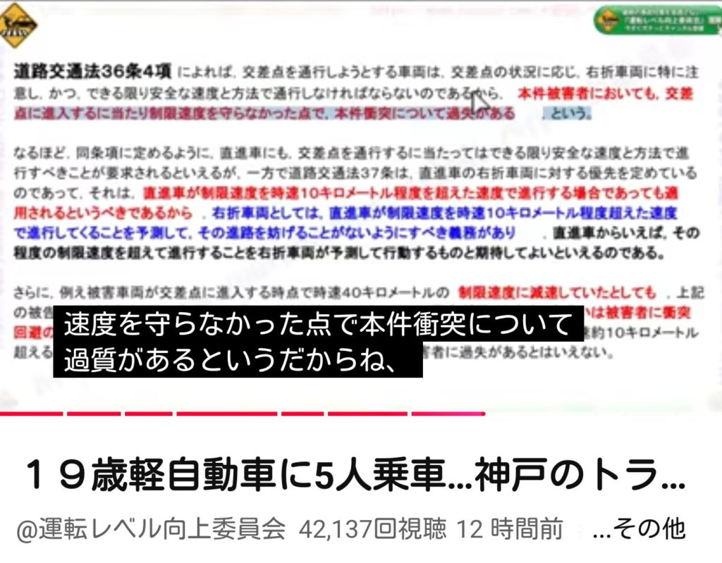 まるで裁判所が認めたかのような解説をしているし、運転レベル向上委員会の引用だと主語が「道路交通法36条4項」に見えるでしょ。
